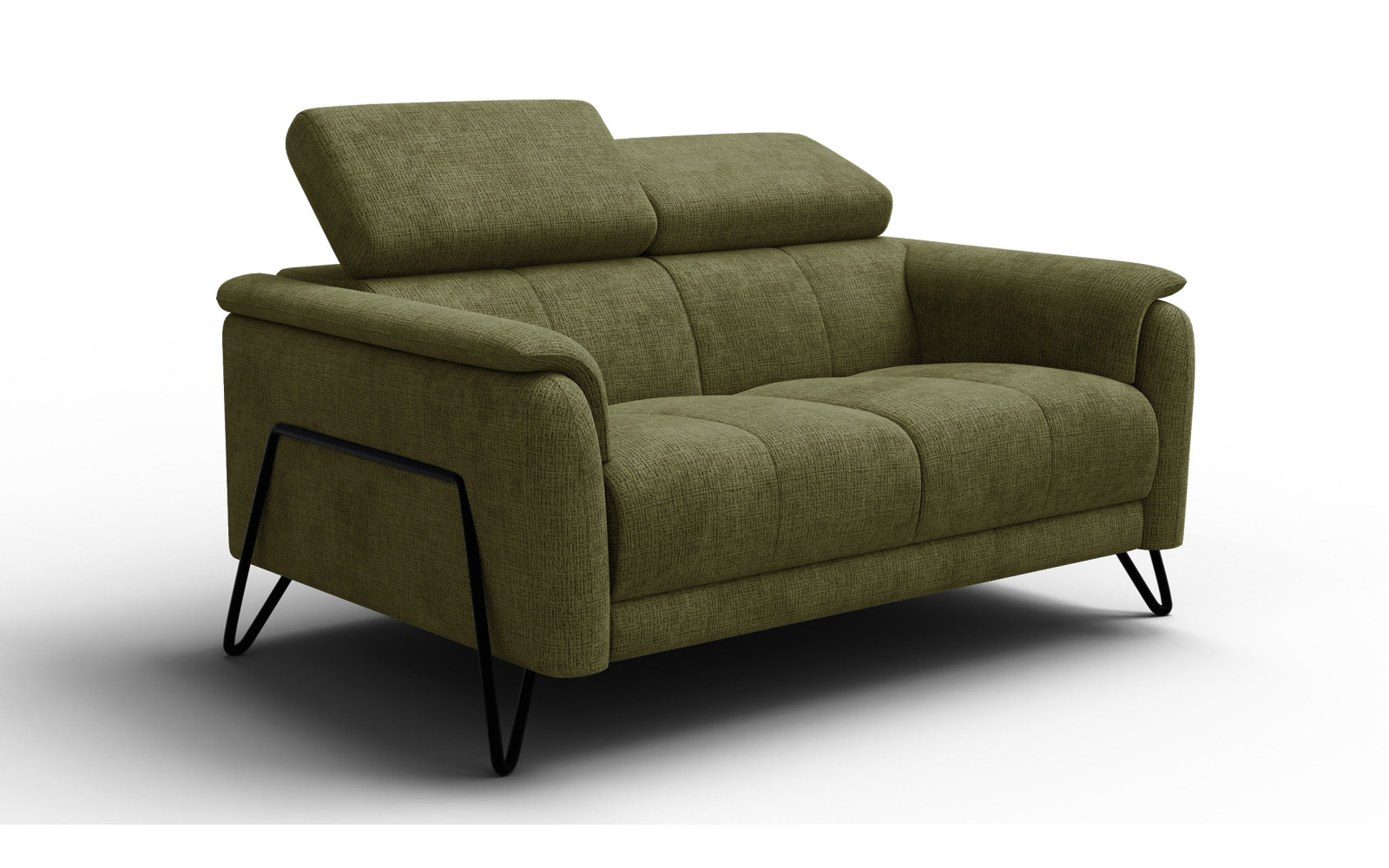Die manuell verstellbaren Kopfstützen des Sofa 2-Sitzer RODEN, olive für Ihren Komfort
