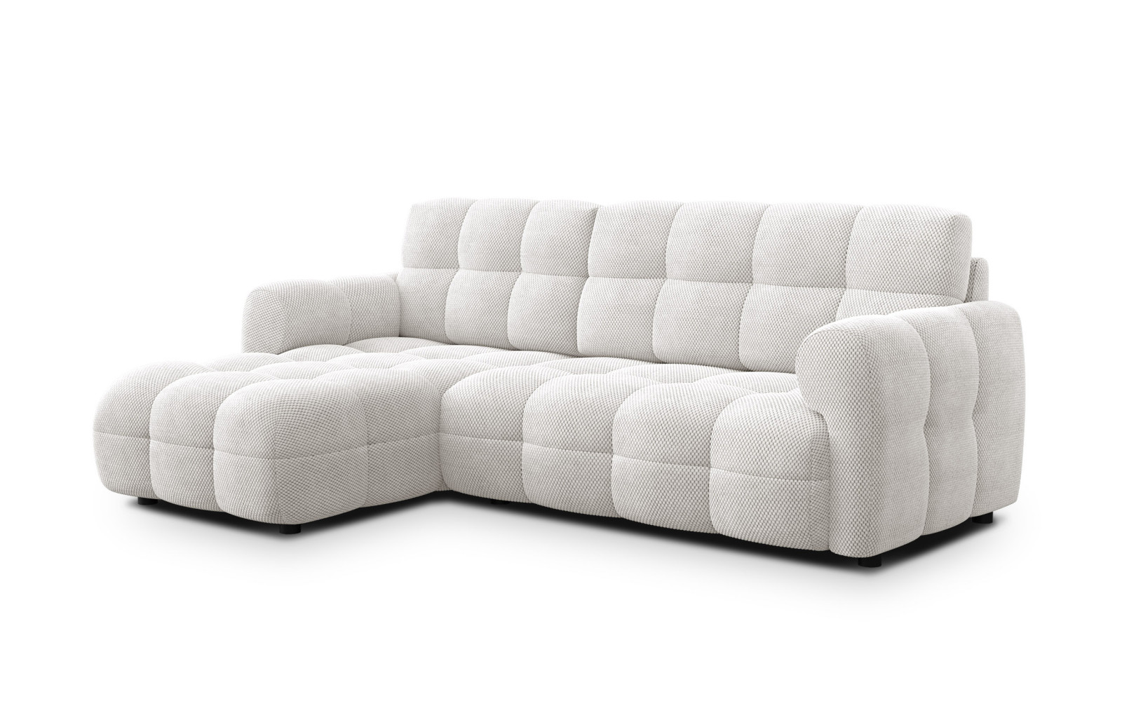 Das Ecksofa 3-Sitzer links MELLOW, creme verkörpert pure Eleganz und zeitlose Schönheit. Wenn Sie Ihr Wohnzimmer in eine helle, freundliche Oase verwandeln möchten, ist dieses Modell die absolute Idealbesetzung. Die sanfte Creme-Nuance strahlt Ruhe und Harmonie aus und lässt selbst kleinere Räume optisch größer und luftiger wirken.