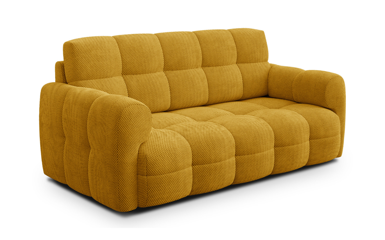 Der Bezugsstoff ist ein haptisches Erlebnis der Extraklasse. Der spezielle Waffelstoff zeichnet sich durch ein klares, dreidimensionales Gewebe in Form von regelmäßigen Würfeln aus. Diese Struktur verleiht dem Sofa 2,5-Sitzer MELLOW, safran eine Tiefe und Griffigkeit, die man bei gewöhnlichen Sofas vergeblich sucht. Der Stoff fühlt sich dabei samtig und außergewöhnlich weich an, ist aber gleichzeitig dick und robust. Er kombiniert auf perfekte Weise ein hochdekoratives Erscheinungsbild mit praktischer Haltbarkeit und Benutzerfreundlichkeit.