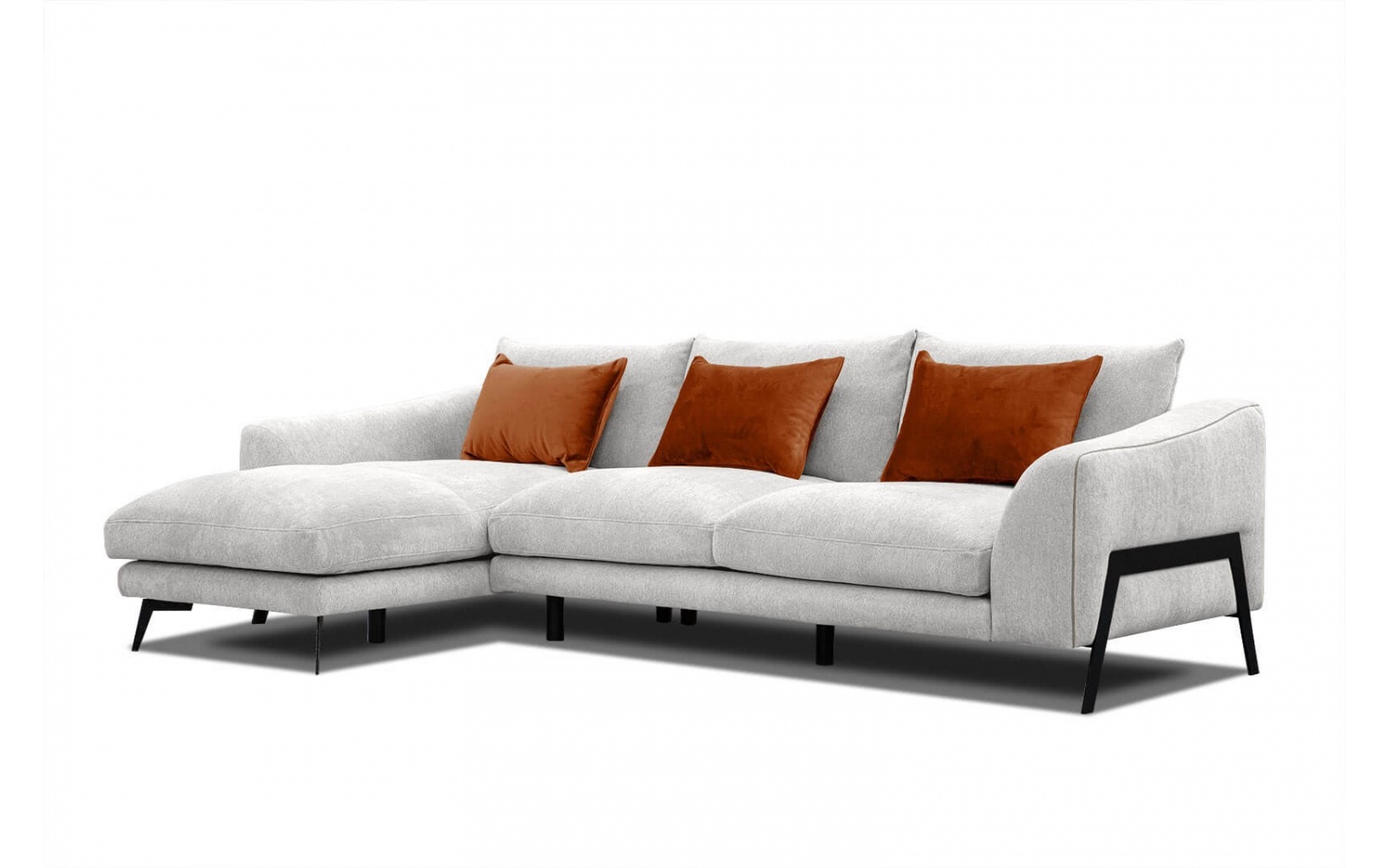 Die großzügige Sitzfläche des Ecksofas gewährleistet ein komfortables und gemütliches Sitzerlebnis. Dieses Möbelstück wird zweifellos den Charakter Ihres Raumes unterstreichen und ihm eine moderne Note verleihen.