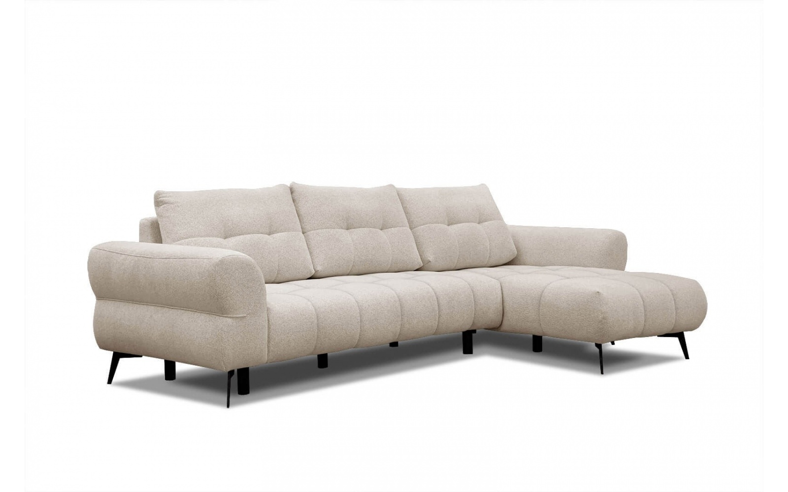 Erleben Sie die zeitlose Eleganz des klassischen 4-Sitzer-Ecksofas Salvini, das Ihrem Wohnraum eine unvergleichliche Note verleiht. Ein herausragendes Merkmal dieses Möbelstücks ist die kunstvoll gesteppten Kissen, die dem Sofa eine anspruchsvolle Raffinesse und einen einzigartigen Charakter verleihen. Die Kombination aus den gesteppten Sitzflächen und schwarzen Metallfüßen strahlt eine stilvolle Klasse und eine elegante Aura aus. Zusätzliche Beine sorgen für die Stabilität und ein sicheres Sitzgefühl.