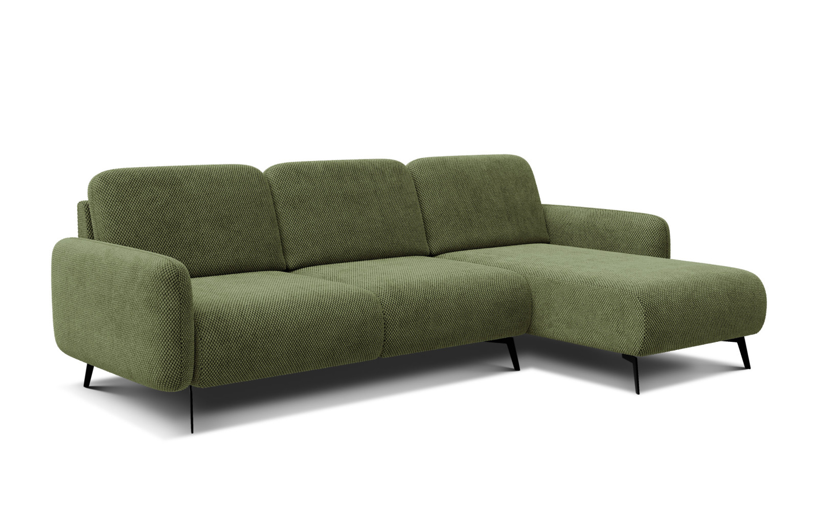 Unterstützt wird das elegante Design durch schlanke, schwarze Metallfüße, die mit einer Höhe von 16 cm für eine moderne Bodenfreiheit sorgen. Dieser Kontrast zwischen dem satten Olivgrün und dem kühlen Schwarz des Metalls verleiht dem Sofa eine zeitgemäße Raffinesse. Gleichzeitig garantiert die solide Bauweise Langlebigkeit und Stabilität, sodass Sie viele Jahre Freude an diesem Designobjekt haben werden. Das Ecksofa 4-Sitzer rechts FEBE, olivgrün ist eine Investition in nachhaltigen Stil.