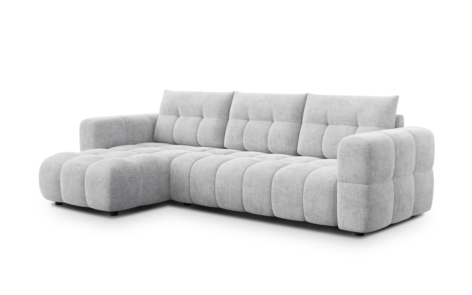 Der Bezugsstoff ist das, was dieses Sofa zu einem wahren Genuss für die Sinne macht. Das verwendete Chenille-Gewebe ist bekannt für seine Weichheit und seinen flauschigen Griff. Beim CLOUDI Ecksofa 4-Sitzer links, hellgrau kommt eine Variante mit klarer Textur zum Einsatz, die sich samtig und luxuriös anfühlt. Es lädt förmlich dazu ein, die Schuhe auszuziehen und sich hineinzukuscheln.
