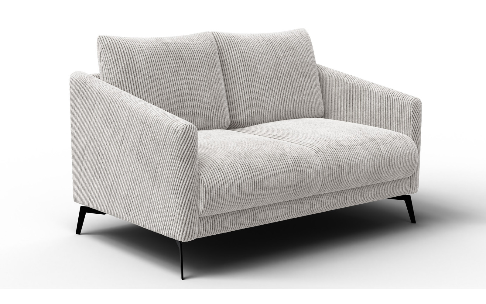 Die Dimensionen von 142 x 89 x 94 cm machen dieses kleine 2er Sofa zu einem wahren Verwandlungskünstler. Es passt perfekt in gemütliche Nischen, Wintergärten oder dient als elegantes Prunkstück in einem kleineren Wohnzimmer. Die schwarzen, 16 cm hohen Metallfüße setzen einen dramatischen, modernen Kontrast zum hellen Stoff und sorgen dafür, dass das Sofa nicht wuchtig wirkt, sondern eine schwebende Eleganz behält. Dieser Kontrast zwischen dem tiefen Schwarz und dem strahlenden Perlweiß ist absolut zeitgemäß und zeugt von designorientiertem Bewusstsein.