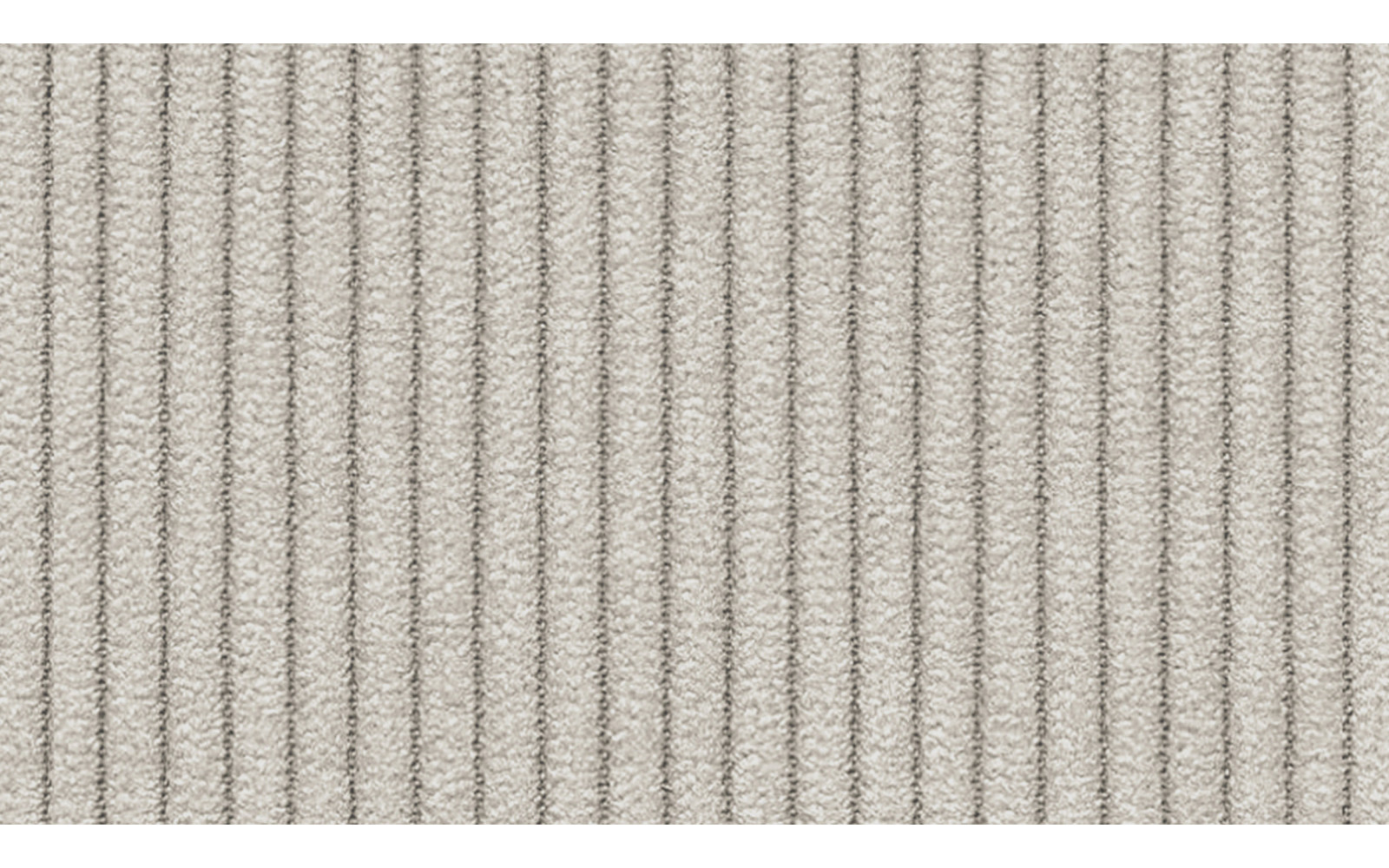 Das Geheimnis seiner gemütlichen Ausstrahlung liegt in dem fantastischen Bezugsstoff. Der verwendete Cord mit seinen ca. 1 cm breiten Streifen bricht die Strenge der weißen Farbe und fügt eine Dimension von Wärme und Textur hinzu. Dieser Stoff ist außergewöhnlich weich, ja fast samtig, und bietet ein haptisches Erlebnis der Extraklasse. Wenn Sie mit der Hand über die Oberfläche streichen, spüren Sie die feinen, flauschigen Borsten, die je nach Richtung ihre Schattierung minimal verändern und so dem Perlweiß eine lebendige, fast schimmernde Qualität verleihen. Es ist ein wahrer Genuss für die Sinne, sich auf diesem Material niederzulassen.