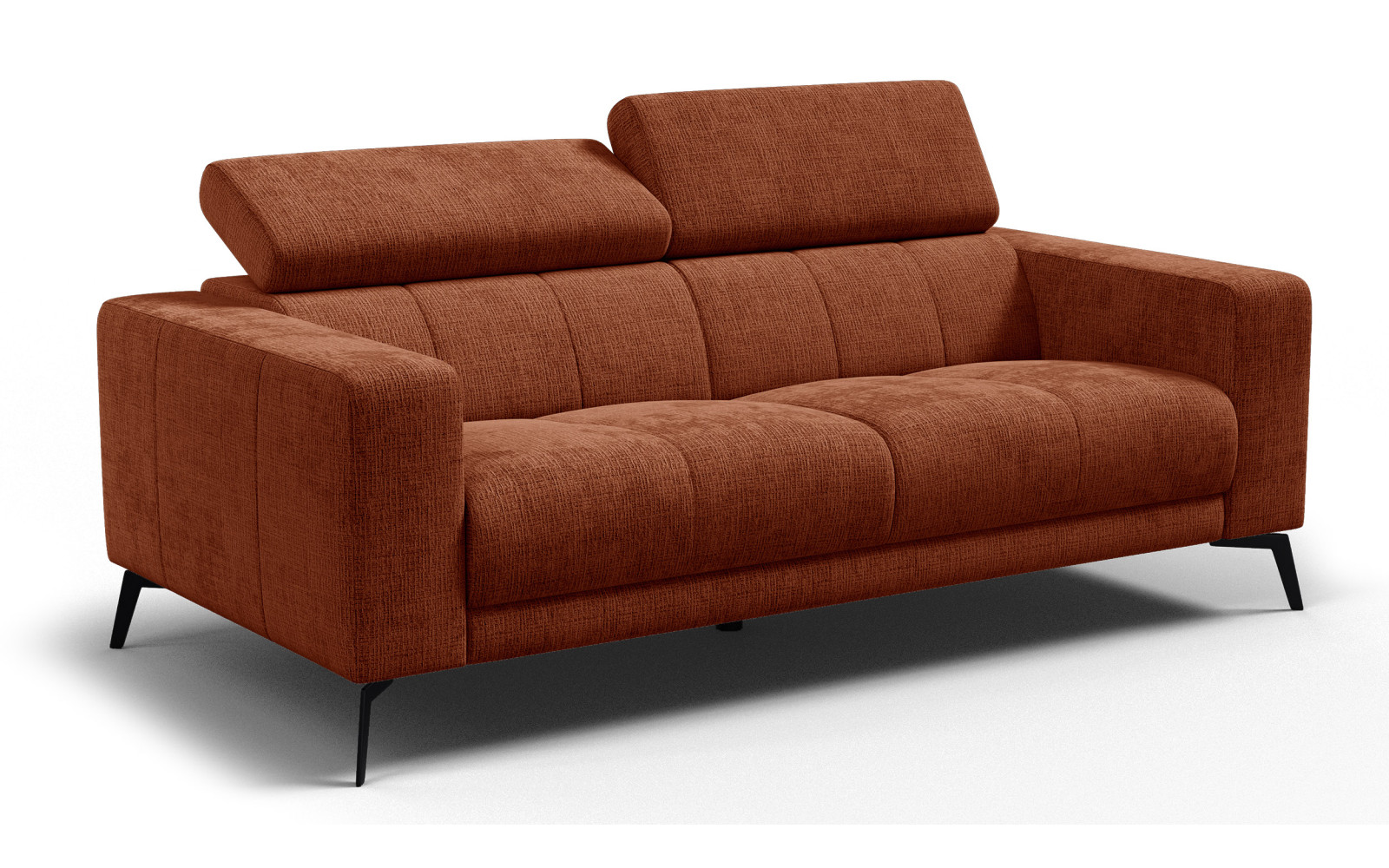 Sofa 3-Sitzer MORELLO in rostrotem Chenille-Stoff, weich und anschmiegsam, strapazierfähig (45.000 Martindale) und leicht in eine helle und elegante Einrichtung zu integrieren.
