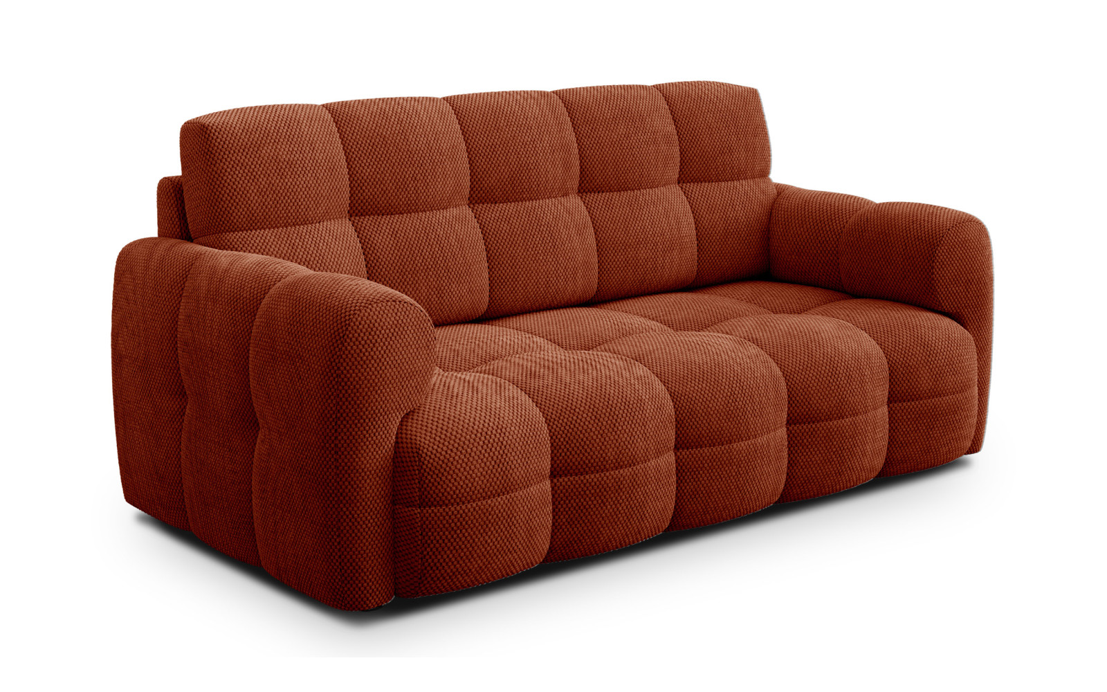 Der Bezugsstoff dieses Modells ist ein wahres Meisterwerk der Textilkunst. Der Waffelstoff zeichnet sich durch ein klares, dreidimensionales Gewebe in Form von regelmäßigen Würfeln aus, was dem Sofa 2,5-Sitzer MELLOW, dunkelorange eine faszinierende Struktur verleiht. Diese Textur ist nicht nur ein visueller Genuss, sondern fühlt sich auch samtig und außergewöhnlich weich auf der Haut an. Trotz dieser Zartheit ist der Stoff dick, stark und verformungsbeständig, was eine perfekte Symbiose aus dekorativem Erscheinungsbild und praktischer Haltbarkeit darstellt.