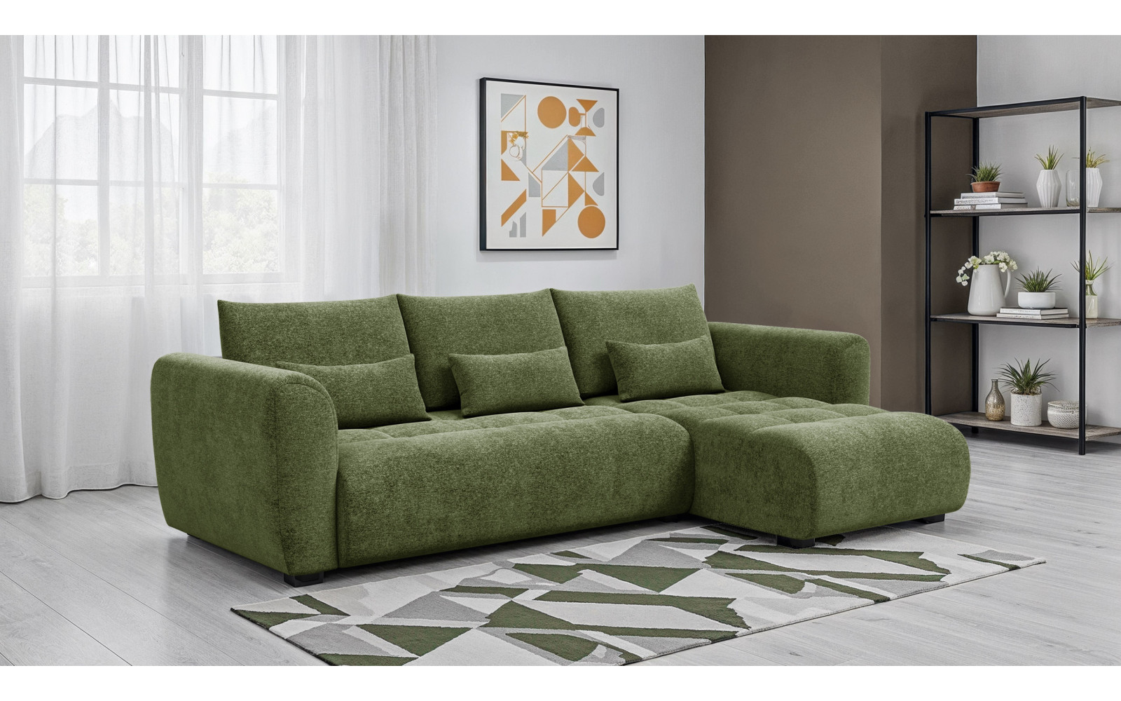 Finden Sie pure Entspannung auf dem Ecksofa 4-Sitzer rechts SORENO, dunkelgrün