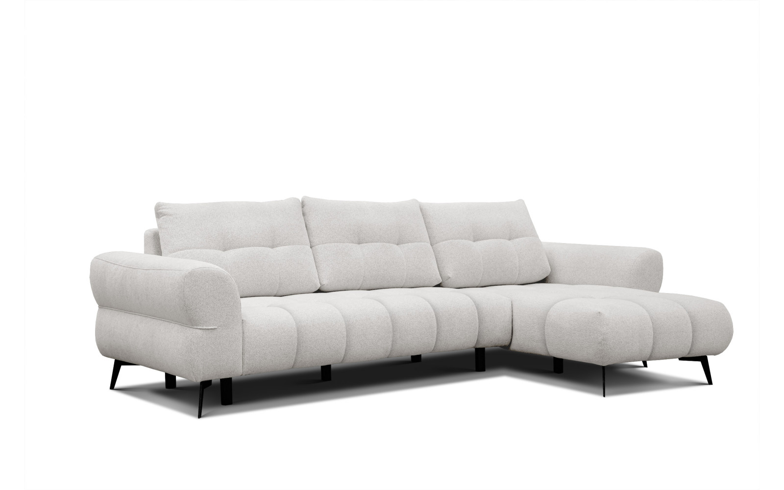 Wer sagt, dass helle Sofas nicht gemütlich sein können? Dieses Modell beweist das Gegenteil. Mit seiner großzügigen L-Form bietet es viel Platz zum Entspannen, Kuscheln und Genießen. Die hochwertige Polsterung aus Schaumstoffen unterschiedlicher Dichte sorgt für einen Sitzkomfort, der seinesgleichen sucht. Man sitzt weich, aber gestützt – pure Entspannung für den Rücken und die Seele nach einem langen Arbeitstag.