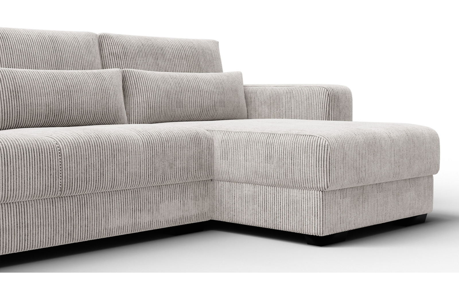 Trotz der hellen Farbe müssen Sie keine Angst vor der Alltagstauglichkeit haben, denn der verwendete Polyesterstoff ist robust und langlebig konzipiert. Cord ist von Natur aus ein dankbares Material, das durch seine Struktur kleine Unregelmäßigkeiten verzeiht und sehr strapazierfähig ist. So erhalten Sie ein Sofa, das wie ein Designobjekt aussieht, aber die Qualitäten eines echten Familienmöbels besitzt.