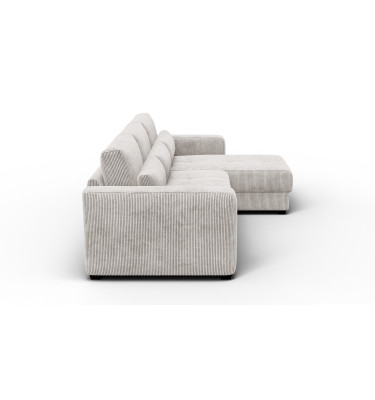 Das Ecksofa 4-Sitzer rechts OLI, perlweiß ist der Inbegriff von luxuriöser Leichtigkeit und purer Eleganz, ein Möbelstück, das Ihr Wohnzimmer in einen strahlenden Tempel der Entspannung verwandelt. Der edle Perlweiß-Ton wirkt unglaublich frisch und sophisticated, er hellt den Raum optisch auf und lässt ihn größer und weiter erscheinen. In Kombination mit der weichen Cord-Struktur entsteht ein Look, der an sanfte Wolken erinnert und eine unvergleichlich traumhafte Atmosphäre schafft, in der man den Alltag sofort vergisst.
