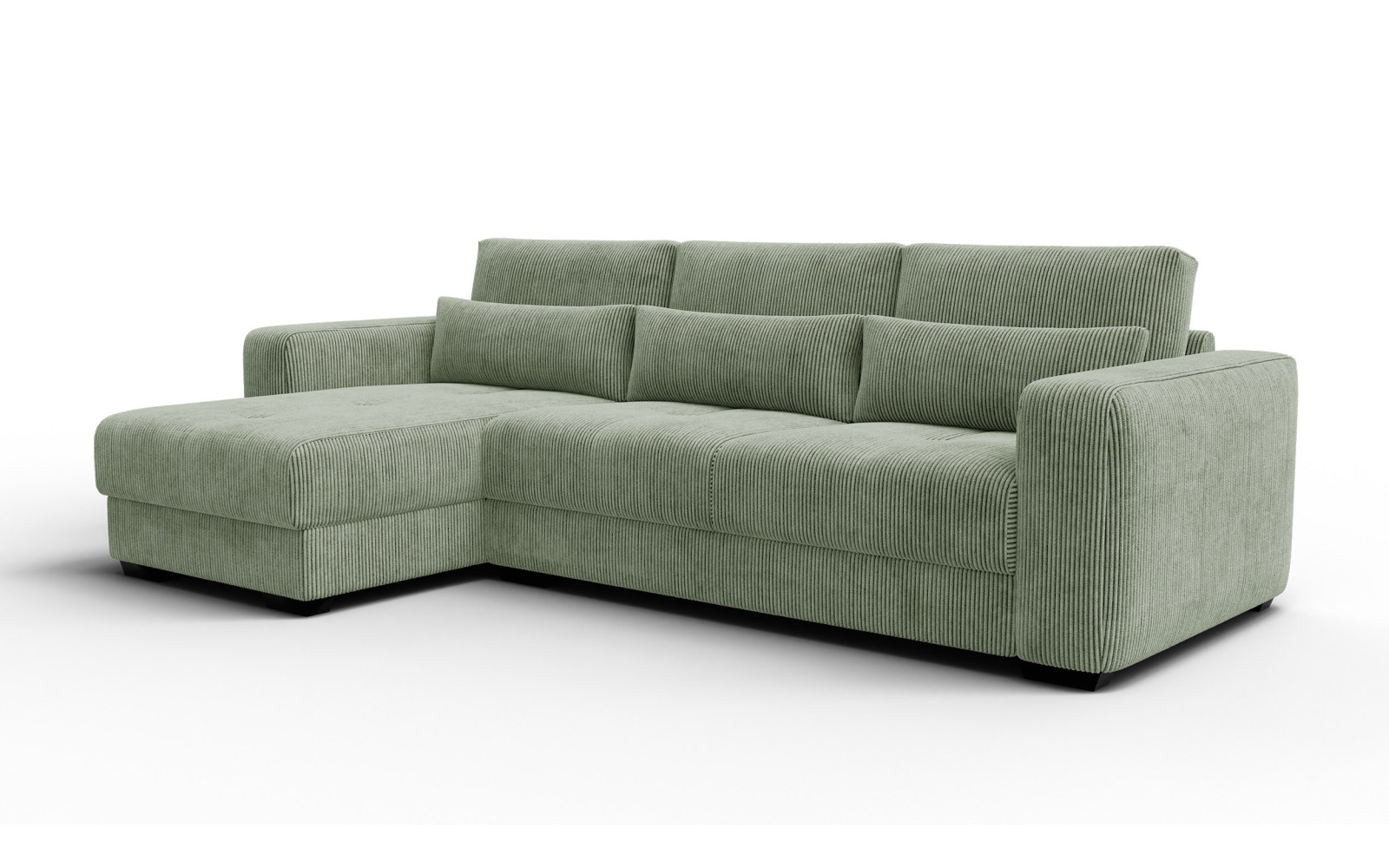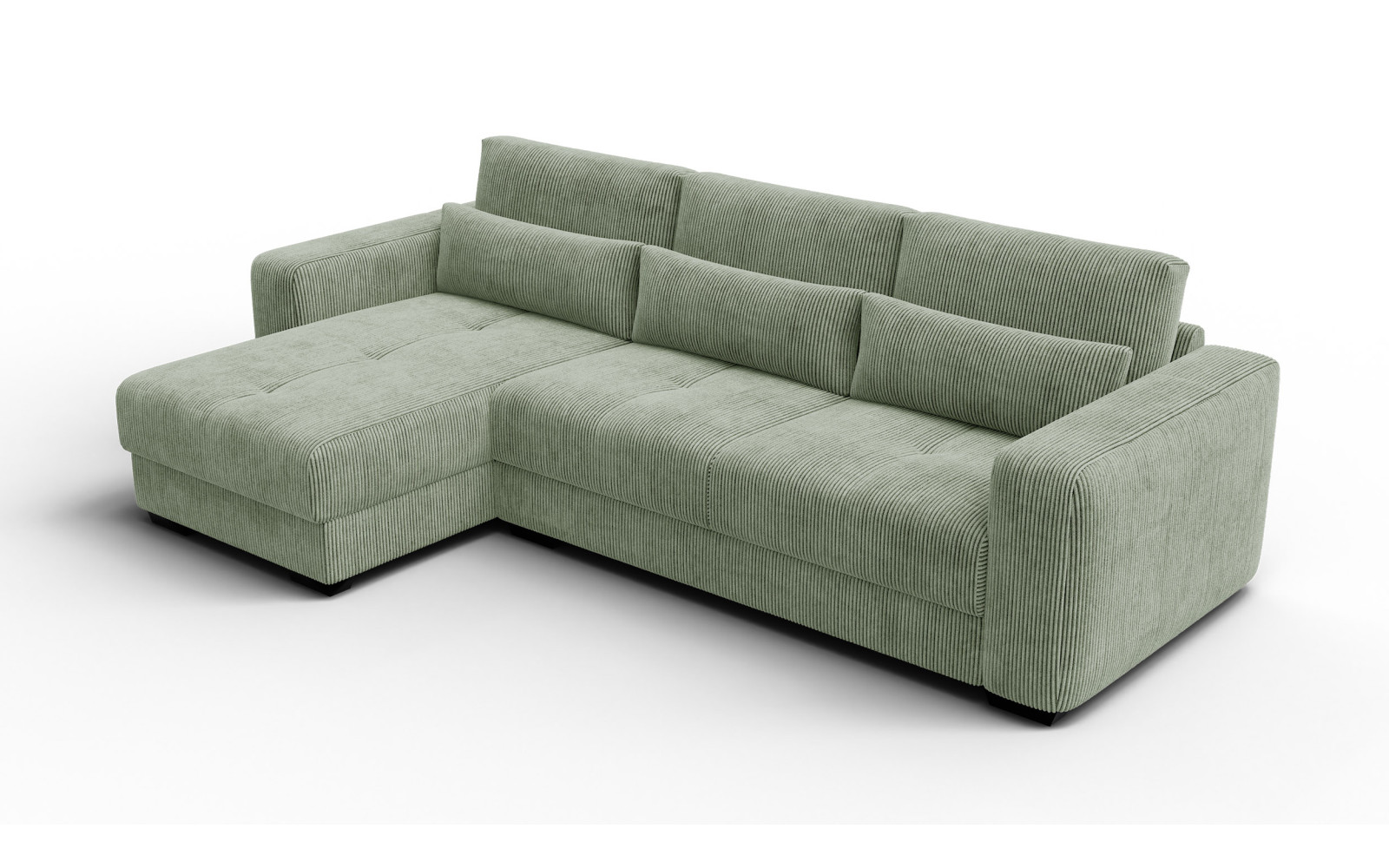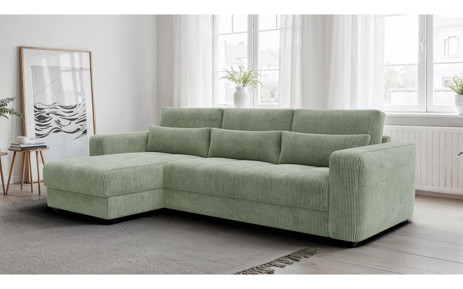 Ecksofa 4-Sitzer links OLI, salbeigrün - Beschreibung: