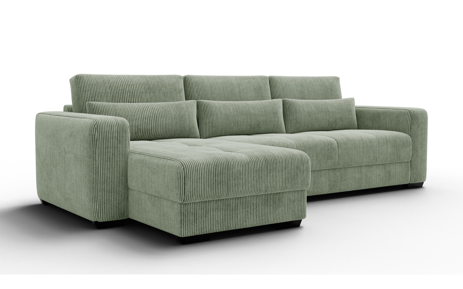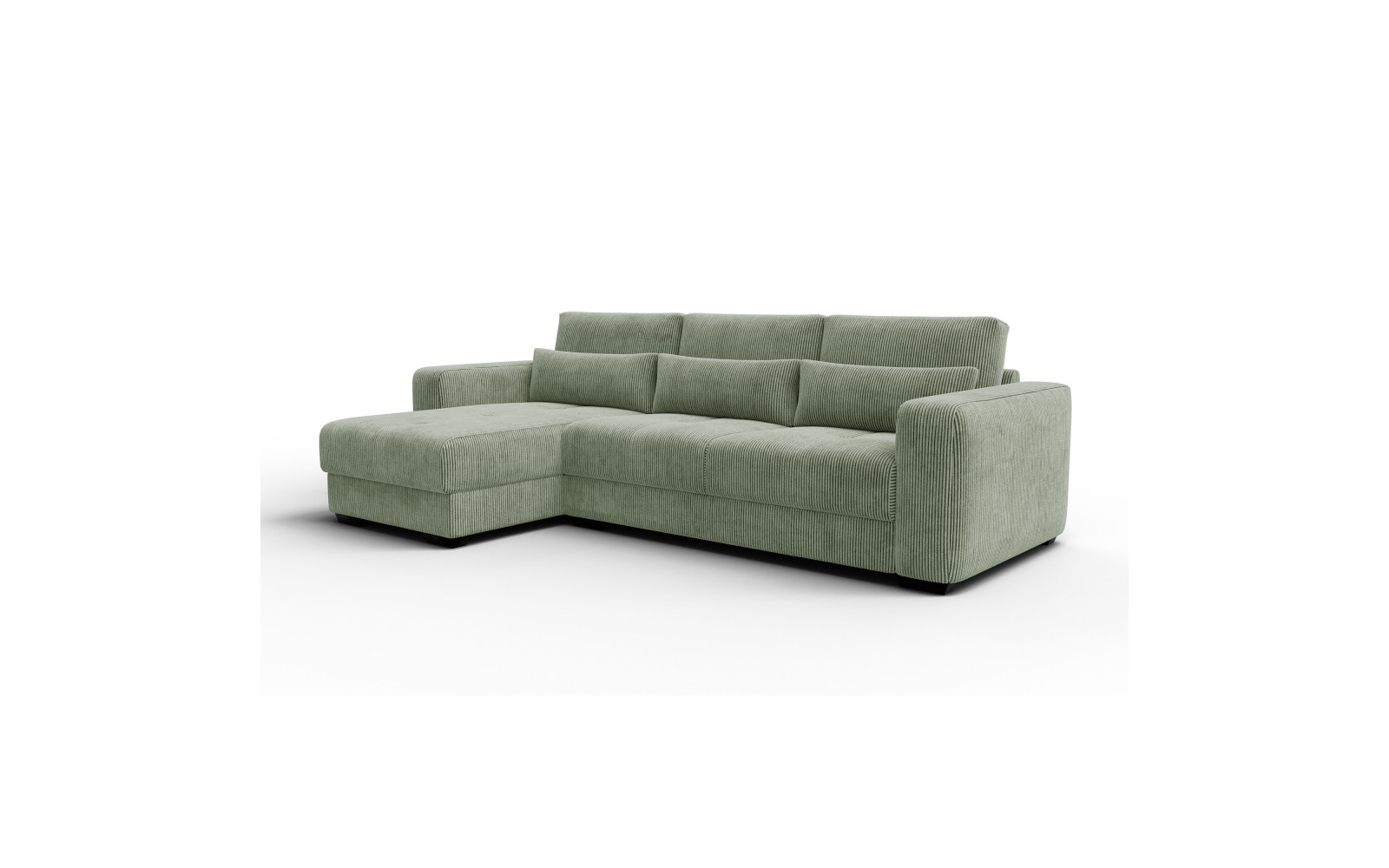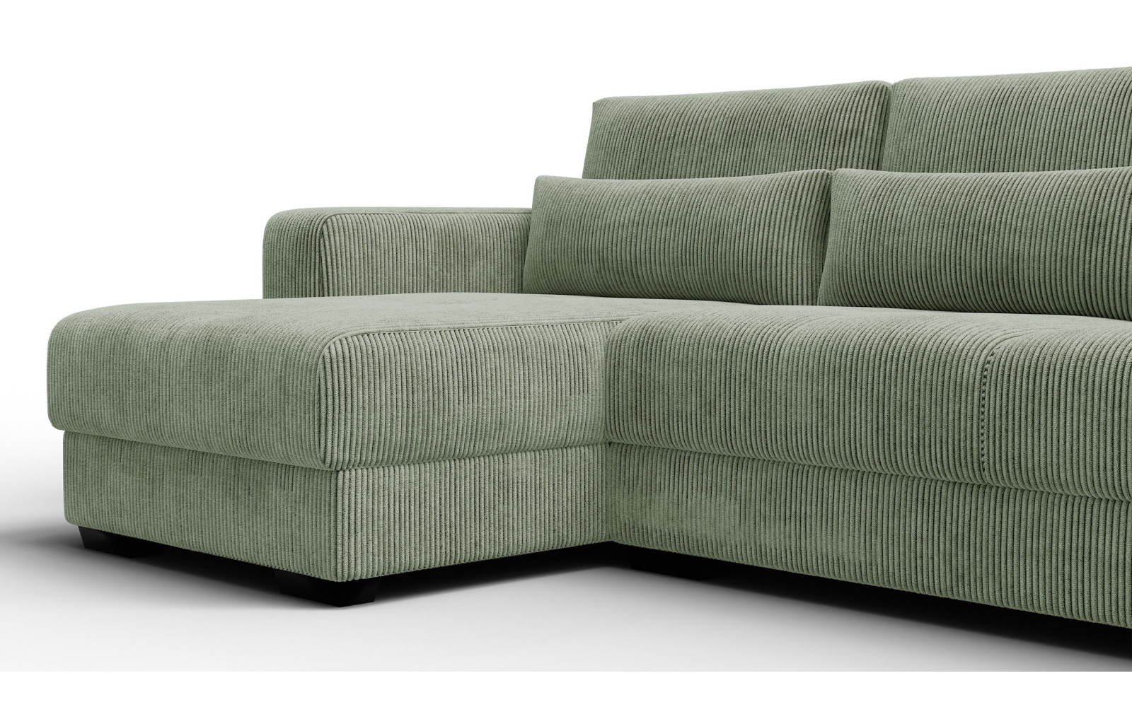 Ecksofa 4-Sitzer links OLI, salbeigrün - Beschreibung: