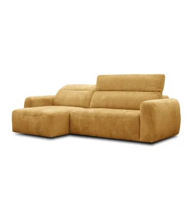 3-Sitzer-Ecksofa in Safran mit klarem Design und zeitloser Farbe. Maße 248 × 84 × 173 cm, Lieferung in 2 Paketen mit einfacher Montage.