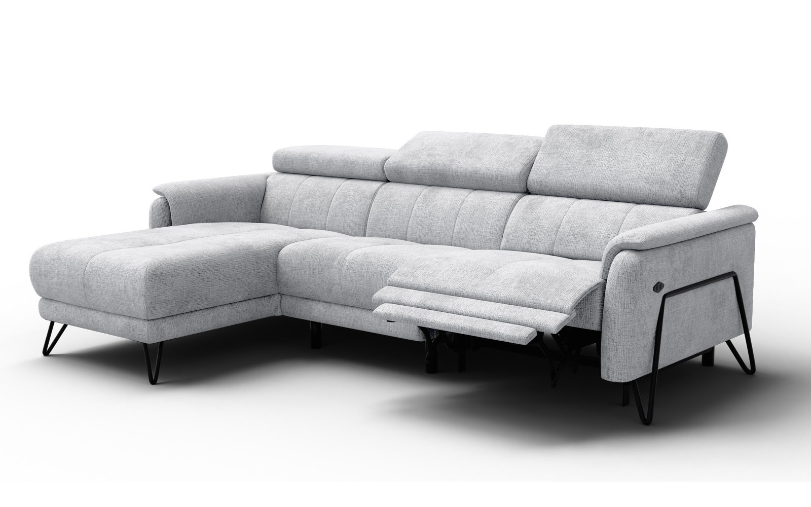 Maße: 268 x 82 x 170 cm, 130 kg. Sitzhöhe: 48 cm, Sitztiefe: 54 cm.Anzahl der Pakete: 3 St. 100x105x76cm, 57kg / 82x105x69cm, 27kg / 173x95x69cm, 52kg. Erfordert Montage.Die Füße: 16 cm, Schwarz. Erfordert Montage. Stoff: Weiches, flauschiges und angenehm anzufassendes Chenill-Gewebe mit klarer Textur. 100% Polyester 330 g/m2 45 000 Martindale cycles Pilling resistance 5, hellgrau.Lieferumfang: 1 x Relax Schwerelosigkeit Elektrische Relaxfunktion mit 4m Kabel zum Anschluss an die Steckdose. Gesteuert mit zwei Tasten – auf der Außenseite der Armlehne. Die Verstellung erfolgt leise und stufenlos: Die Rückenlehne bewegt sich leicht nach vorne, die Fußstütze hebt die Beine in eine waagerechte Position. Die gewünschte Position kann jederzeit gestoppt werden. Komfortabel für Personen jeder Körpergröße.