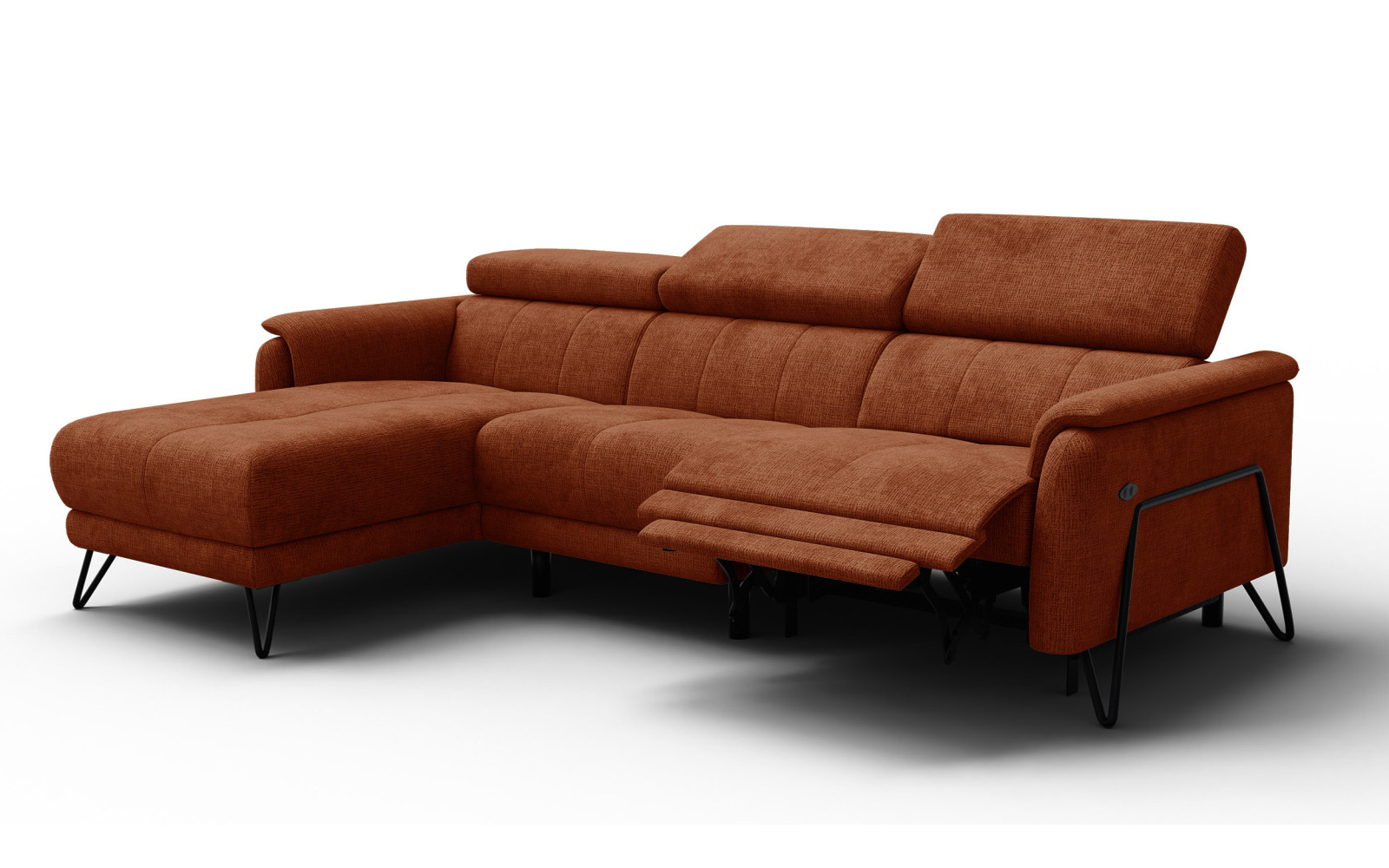 Das Ecksofa 4-Sitzer mit Relax RODEN, rostrot ist weit mehr als nur ein Gebrauchsgegenstand. Es ist Ausdruck von Stil und Persönlichkeit. Der strapazierfähige Chenille-Bezug garantiert, dass die Schönheit des Sofas auch bei täglicher Nutzung erhalten bleibt. Es fügt sich wunderbar in Umgebungen mit Holztönen oder neutralen Wänden ein.