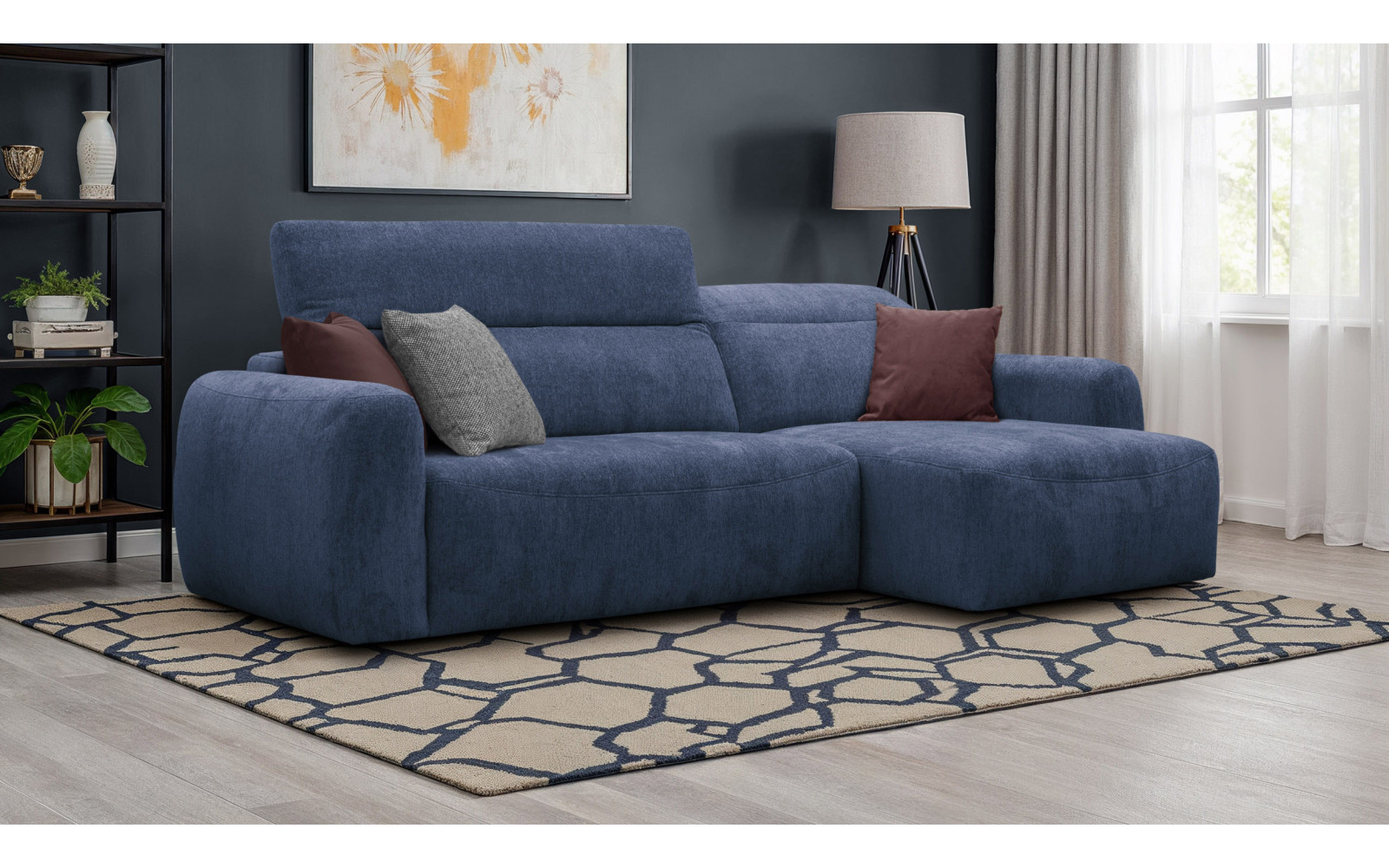Entspannung auf Knopfdruck: Die elektrische Funktion im Ecksofa 4-Sitzer rechts NERO, dunkelblau