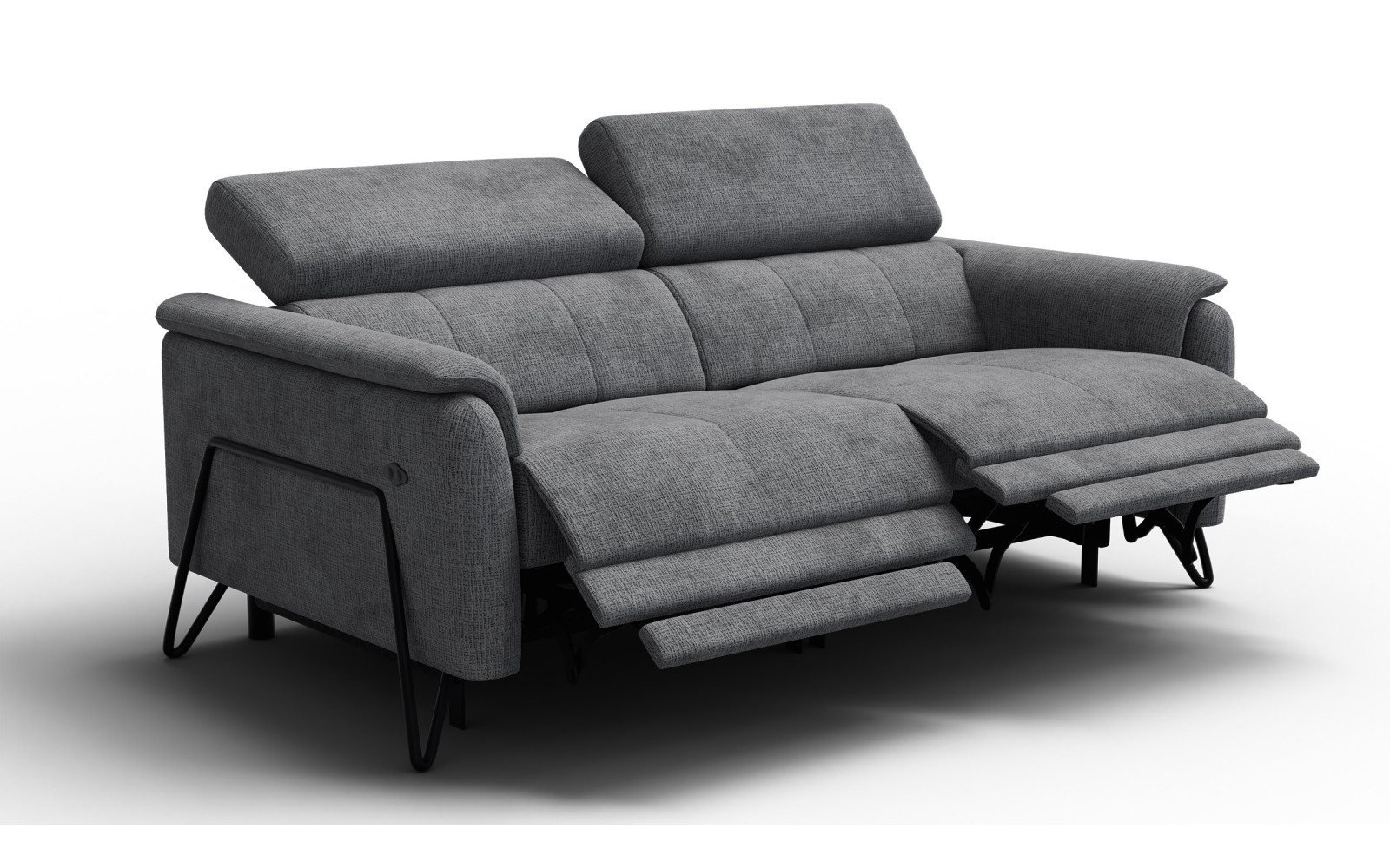 Maße: 194 x 82 x 103 cm, 114 kg. Sitzhöhe: 48 cm, Sitztiefe: 54 cm.Anzahl der Pakete: 2 St. 100x105x76cm, 57kg / 100x105x76cm, 57kg. Erfordert Montage.Die Füße: 16 cm, Schwarz. Erfordert Montage. Stoff: Weiches, flauschiges und angenehm anzufassendes Chenill-Gewebe mit klarer Textur. 100% Polyester 330 g/m2 45 000 Martindale cycles Pilling resistance 5, dunkelgrau.2 x Relax Schwerelosigkeit Elektrische Relaxfunktion mit 4m Kabel zum Anschluss an die Steckdose. Gesteuert mit zwei Tasten – auf der Außenseite der Armlehne. Die Verstellung erfolgt leise und stufenlos: Die Rückenlehne bewegt sich leicht nach vorne, die Fußstütze hebt die Beine in eine waagerechte Position. Die gewünschte Position kann jederzeit gestoppt werden. Komfortabel für Personen jeder Körpergröße.