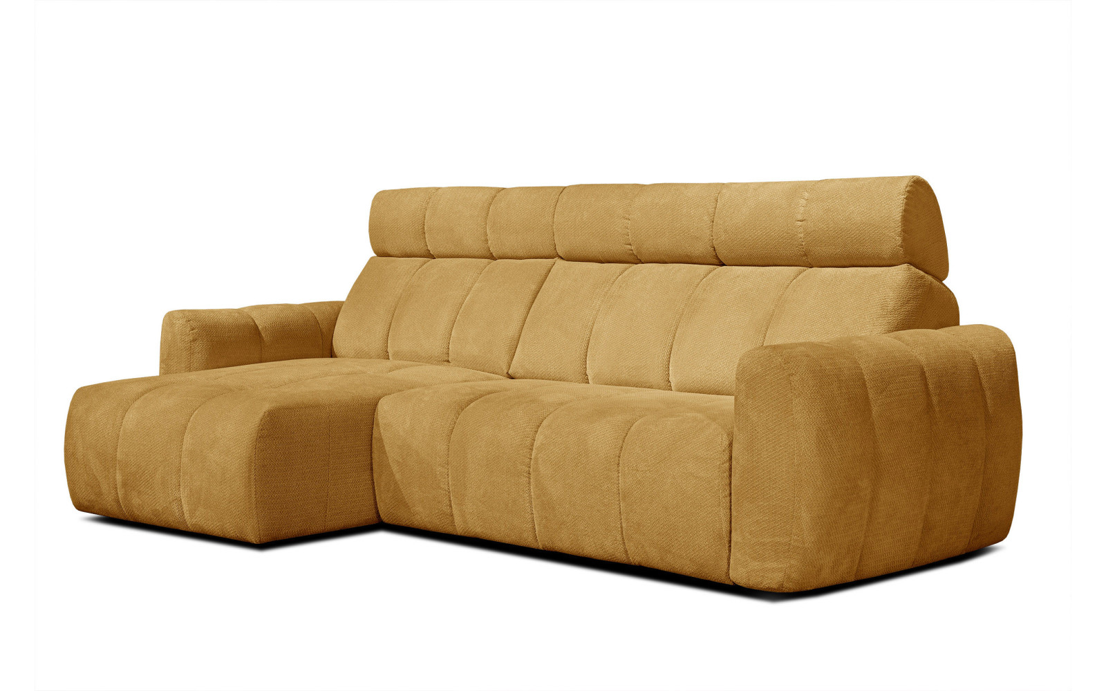 KIMI 3-Sitzer Ecksofa links, ausziehbarer Sitz, verstellbare Kopfstützen, gelb senf