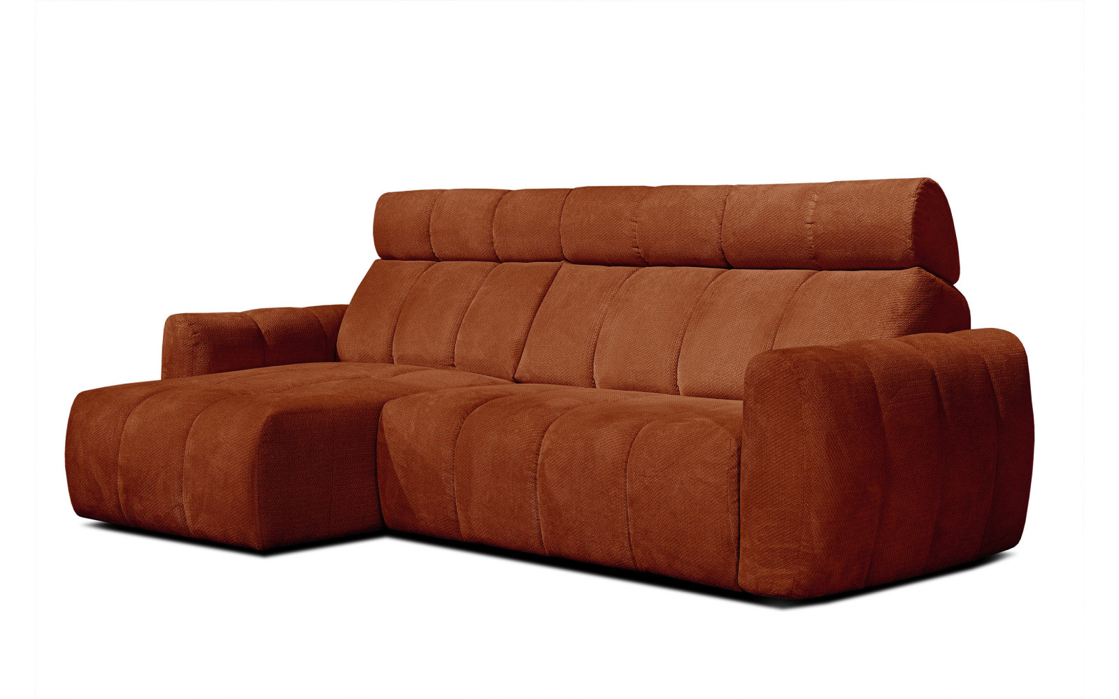 KIMI 3-Sitzer Ecksofa links, ausziehbarer Sitz, verstellbare Kopfstützen, rot