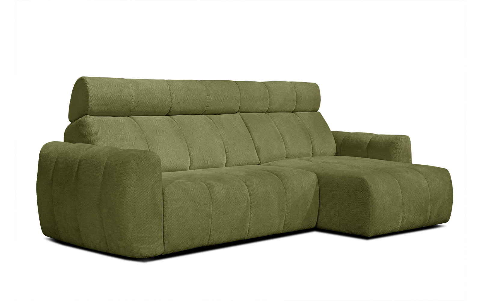 KIMI 3-Sitzer Ecksofa rechts, ausziehbarer Sitz, verstellbare Kopfstützen, olivgrün
