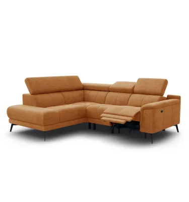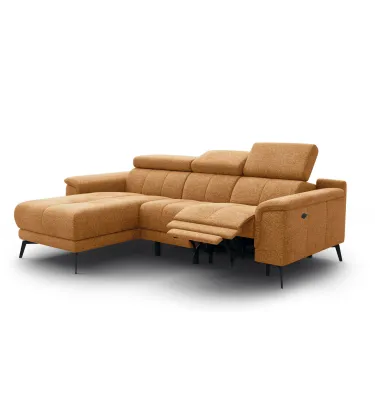 KIMI 3-Sitzer Ecksofa rechts, ausziehbarer Sitz, verstellbare Kopfstützen, gelber Senf