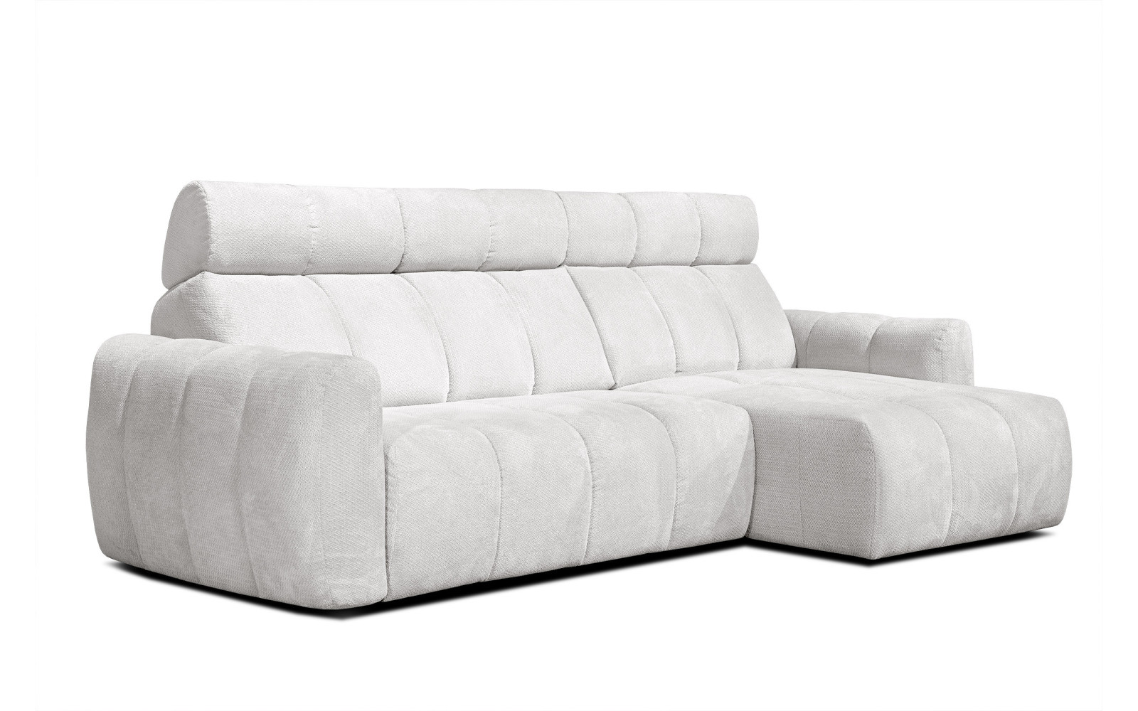 KIMI 3-Sitzer Ecksofa rechts, ausziehbarer Sitz, verstellbare Kopfstützen, creme
