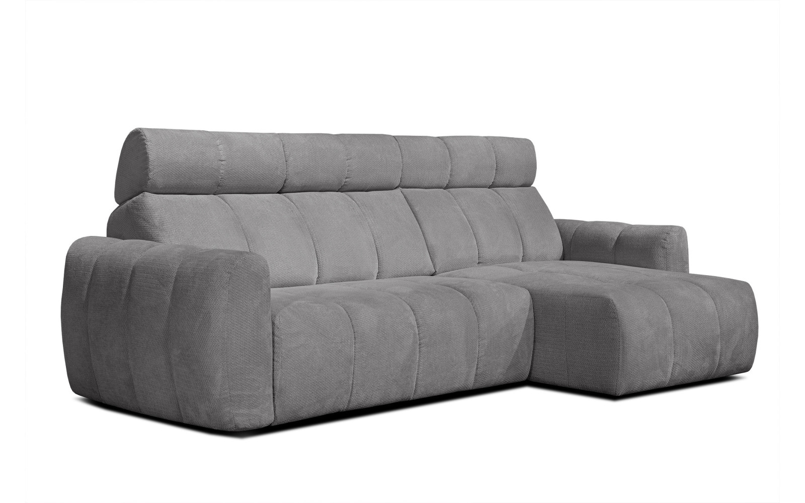 KIMI 3-Sitzer Ecksofa rechts, ausziehbarer Sitz, verstellbare Kopfstützen, grau