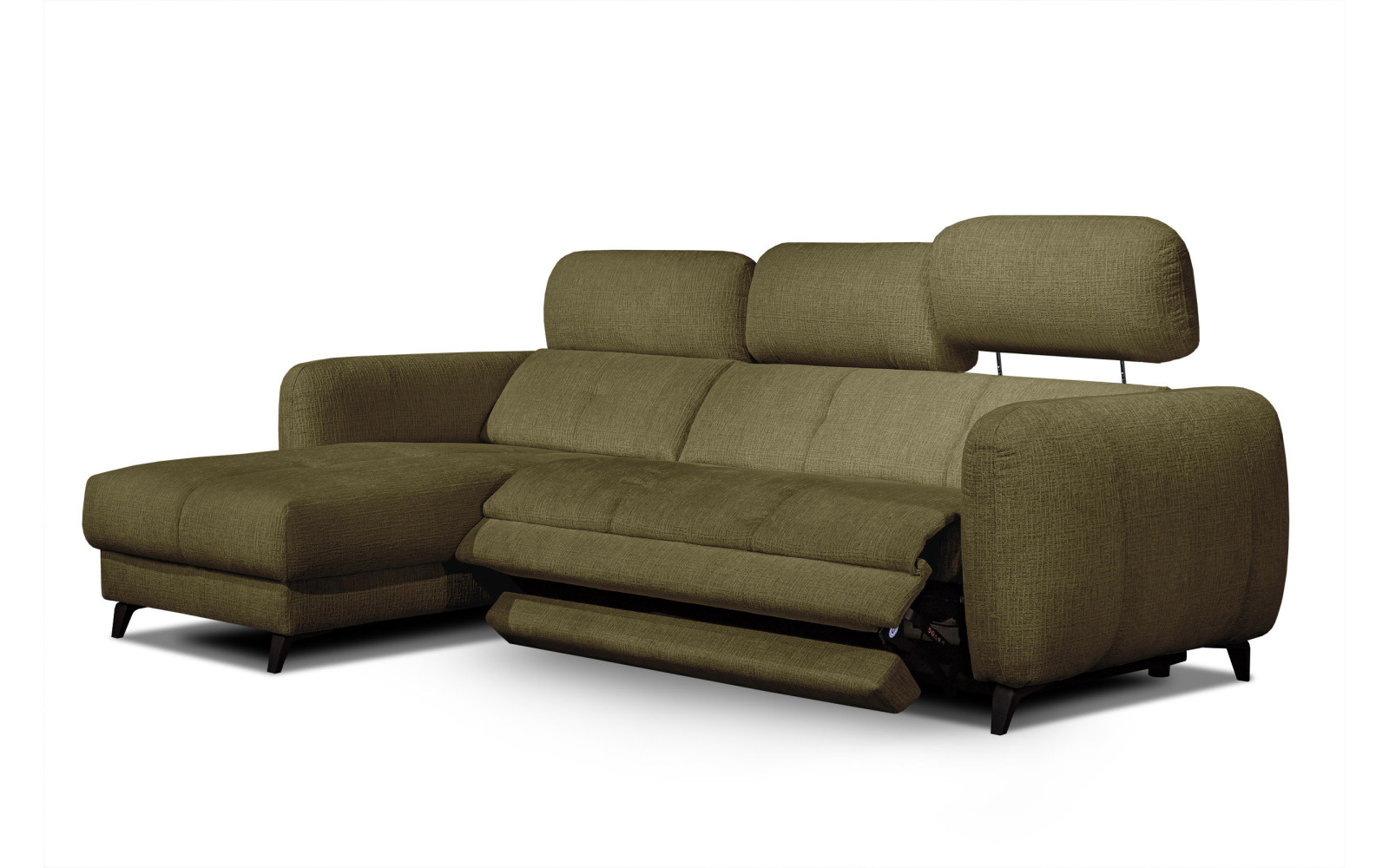SVEN 3-Sitzer Ecksofa links, 1 relax XL, verstellbare Kopfstützen, olivgrün