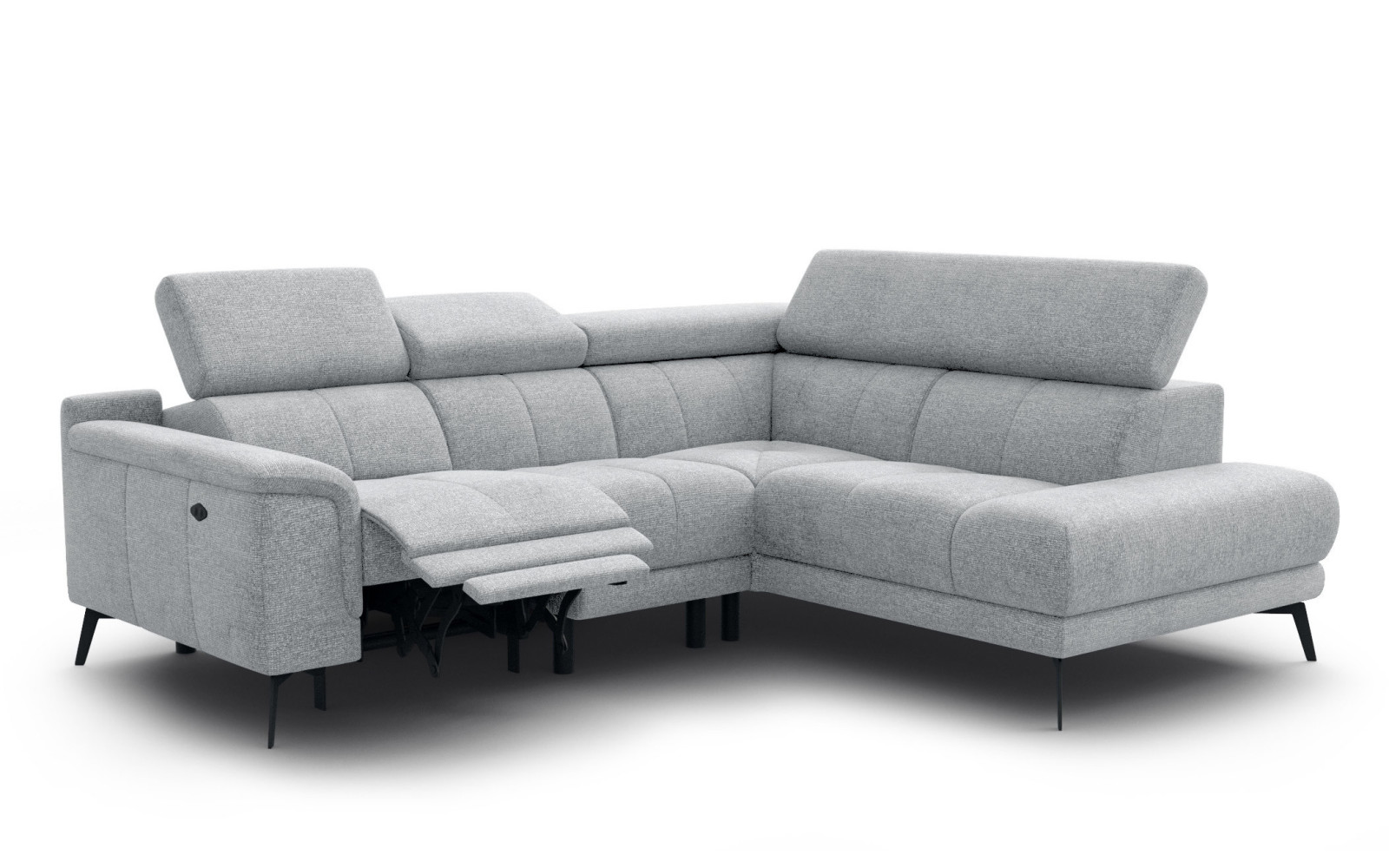 Ecksofa FIERO 4-Sitzer mit 1 Relaxfunktion und verstellbare Kopfstützen, silbergrau