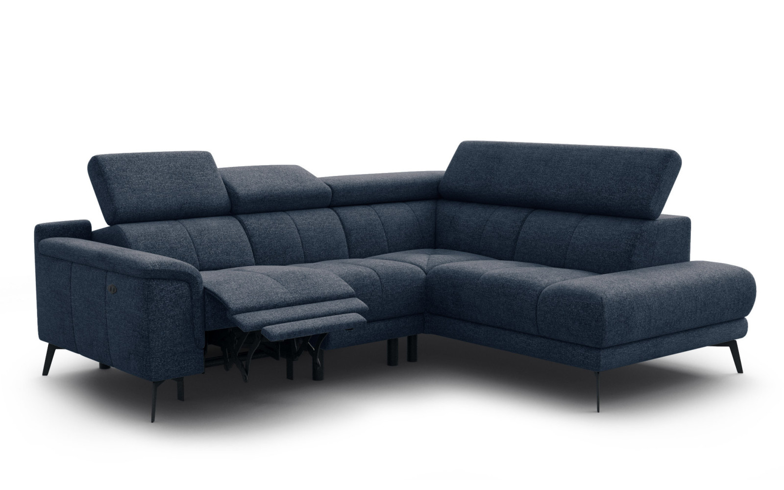 Ecksofa FIERO 4-Sitzer mit 1 Relaxfunktion und verstellbare Kopfstützen, marineblau