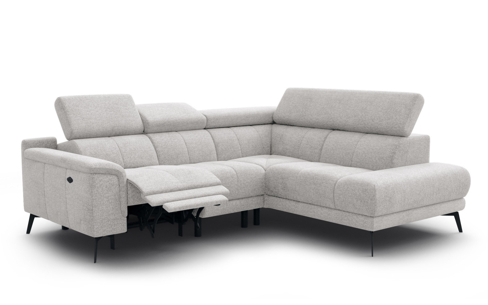 Ecksofa FIERO 4-Sitzer mit 1 Relaxfunktion und verstellbare Kopfstützen, hellbeige