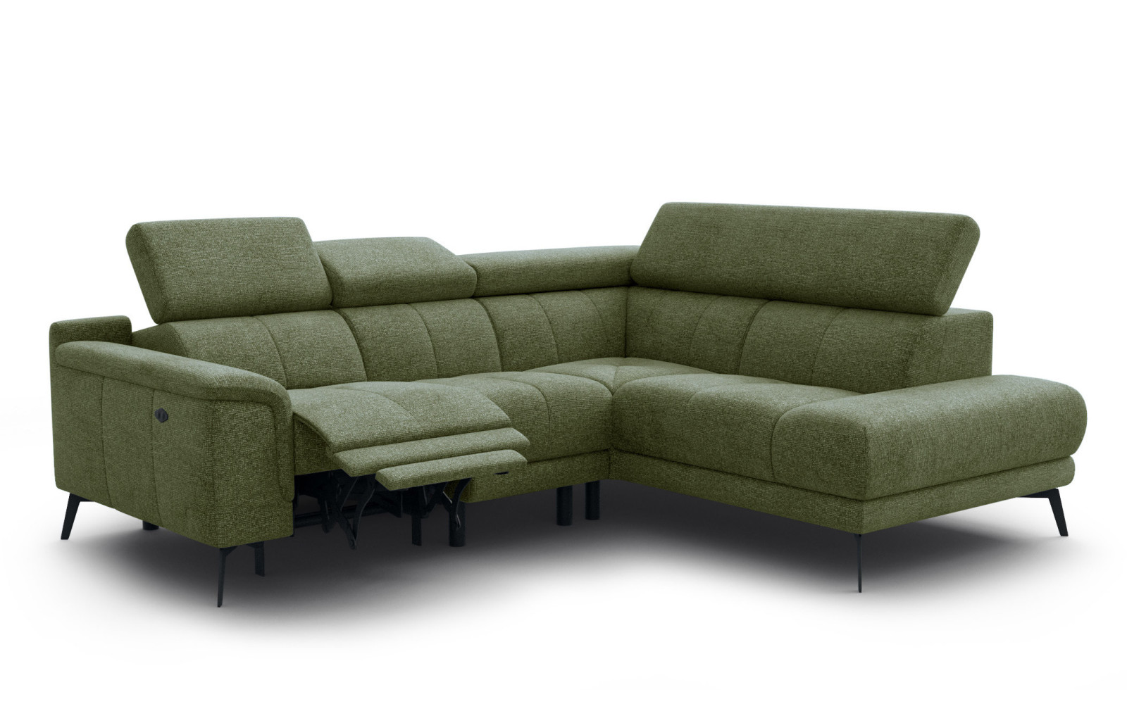 Ecksofa FIERO 4-Sitzer mit 1 Relaxfunktion und verstellbare Kopfstützen, olive