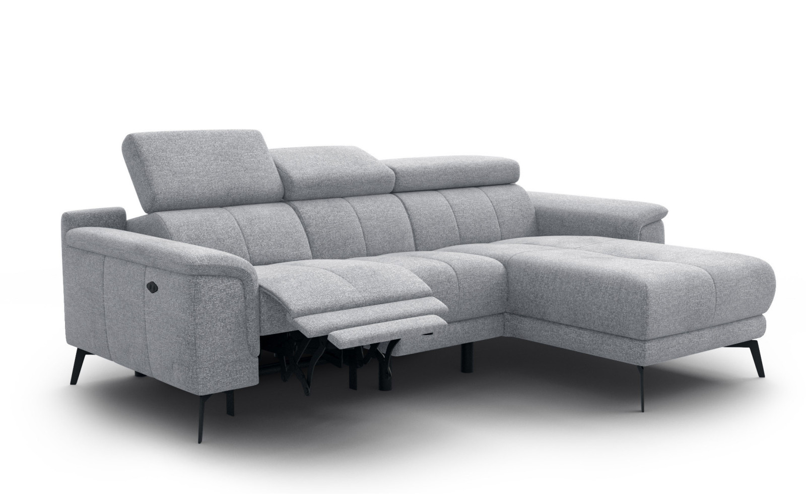 Ecksofa FIERO 3-Sitzer mit 1 Relaxfunktion und verstellbare Kopfstützen, silbergrau