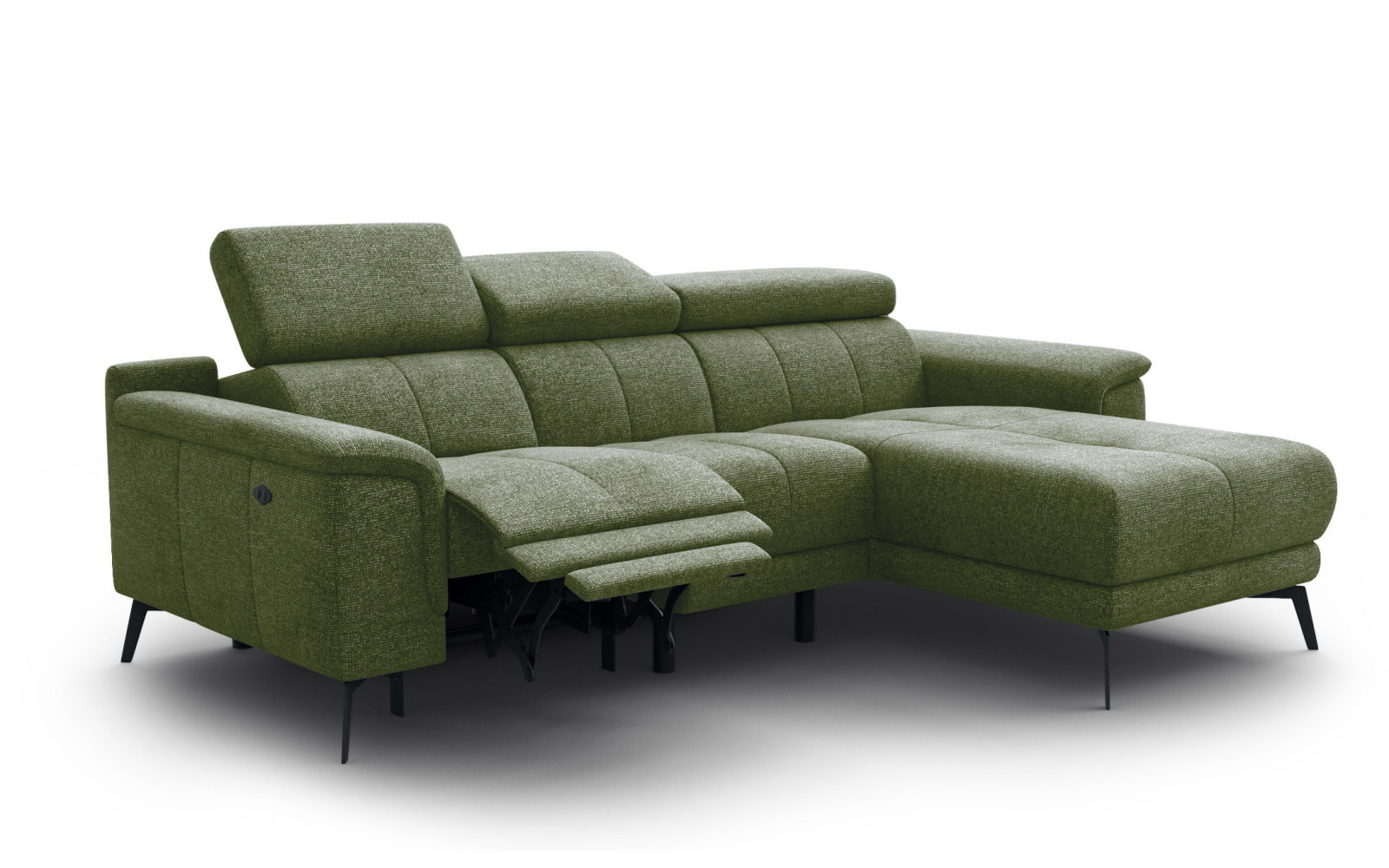 Ecksofa FIERO 3-Sitzer mit 1 Relaxfunktion und verstellbare Kopfstützen, olive