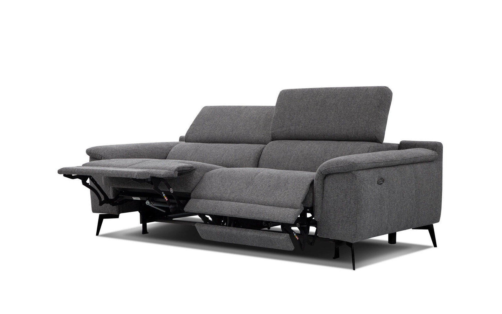 Sofa FIERO 3-Sitzer mit 2 Relaxfunktionen und verstellbare Kopfstützen, dunkelgrau