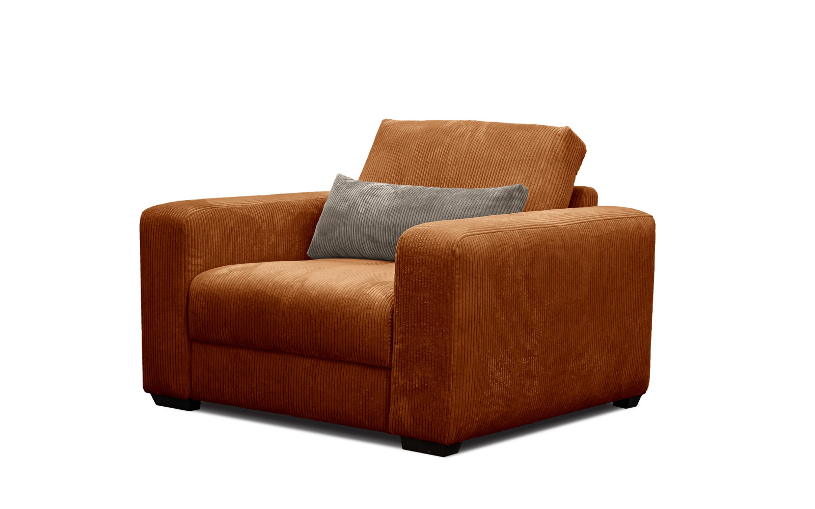 Der Bezug aus hochwertigem Cordstoff ist nicht nur optisch ein Genuss, sondern auch haptisch ein Erlebnis. Die breiten Streifen verleihen dem Sessel OLI, orange eine interessante Struktur, die das Licht bricht und der Farbe Tiefe verleiht. Der Stoff ist unglaublich weich, fast samtig, und lädt dazu ein, berührt zu werden. Ein Streicheln über den Flor verändert die Farbnuancen und macht die Oberfläche lebendig – ein Genuss für die Sinne, der zum Verweilen einlädt.