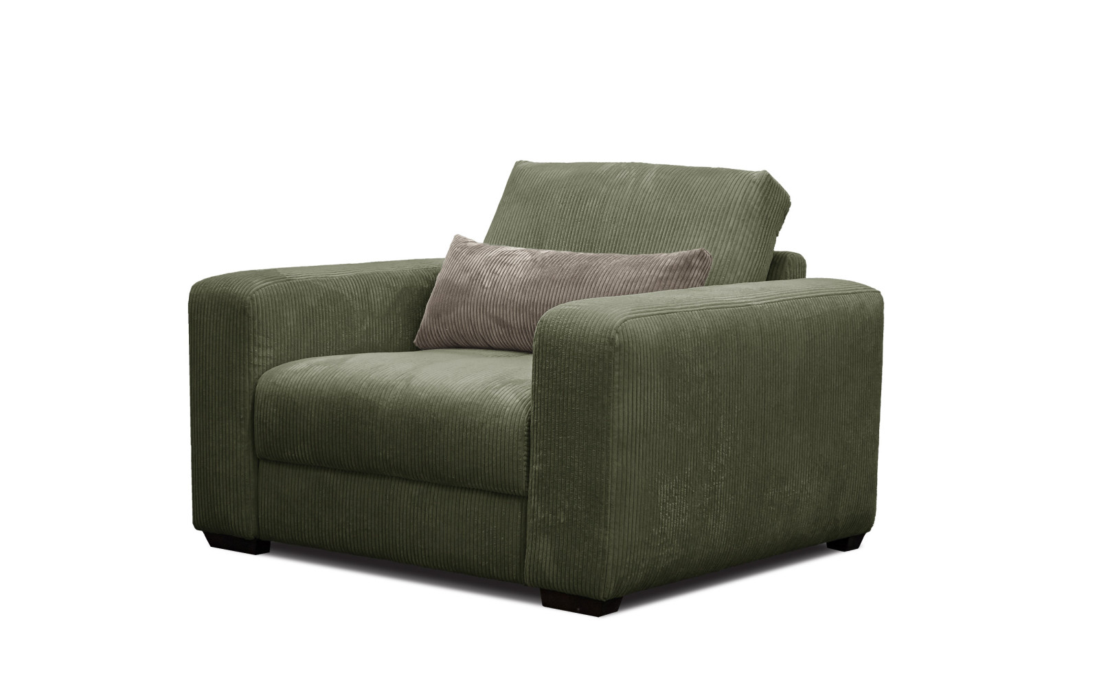 Die Konstruktion ist robust und langlebig, was durch die stabilen braunen Füße unterstrichen wird. Sie bilden einen harmonischen Übergang zum olivgrünen Stoff und verstärken den natürlichen Look. Dank seiner kompakten Größe lässt sich der Cordsessel flexibel im Raum platzieren, ohne dominant zu wirken. Der Sessel OLI, olivgrün ist ein Möbelstück, das auf Langlebigkeit und zeitloses Design ausgelegt ist.